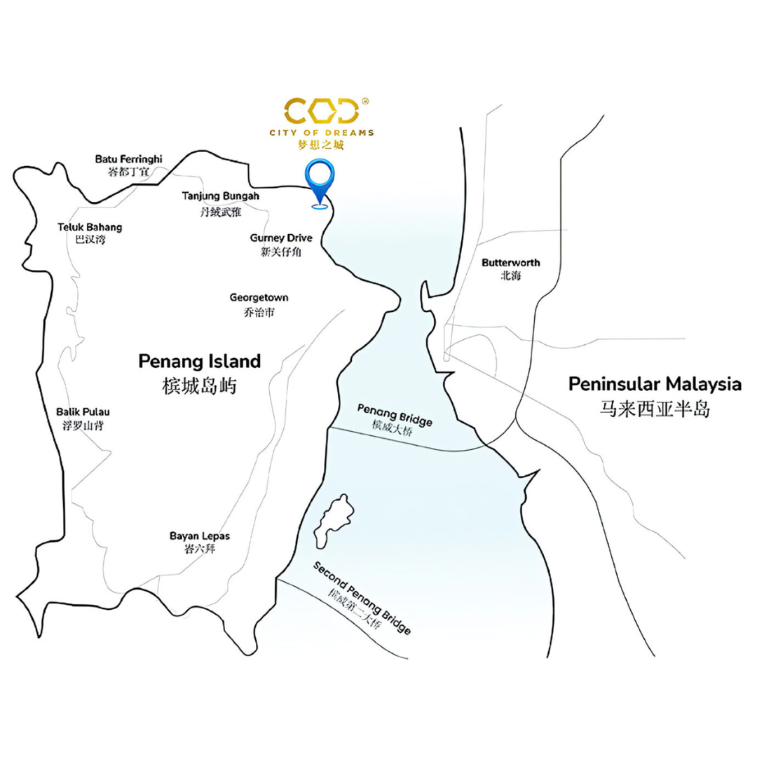 This new landmark development is poised to become an iconic feature overlooking the Gurney Drive foreshore. With its prime waterfront location, uninterrupted views and world-class amenities, City of Dreams Penang is one of the most desirable address on the island of Penang